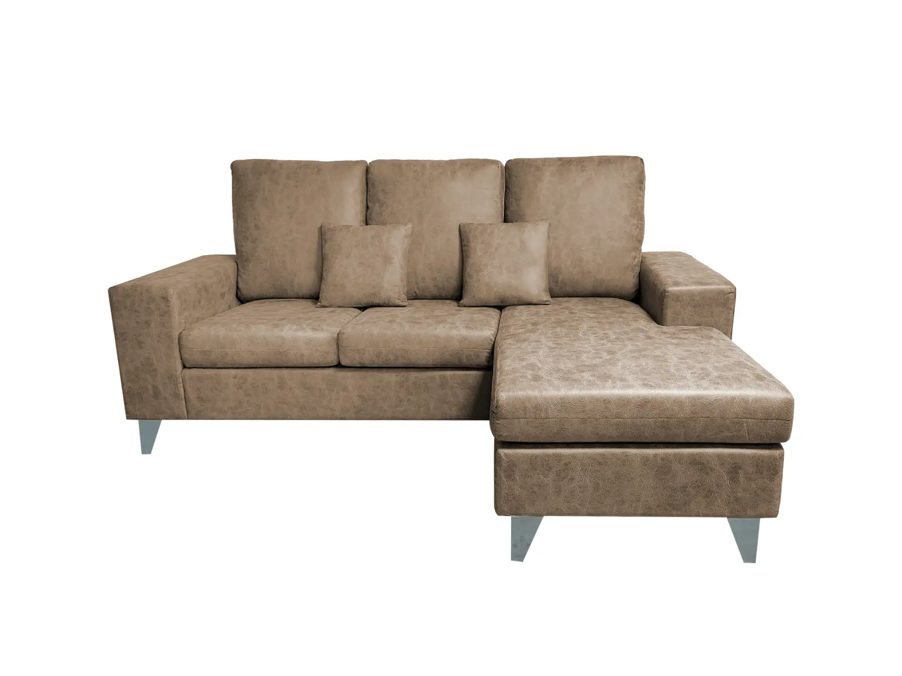 Su diseño práctico incluye un módulo pouf independiente, lo que te permite cambiar la orientación del chaise longue a la derecha o a la izquierda en cualquier momento, sin herramientas ni complicaciones. Esto lo convierte en una pieza funcional que se adapta fácilmente a distintos espacios.