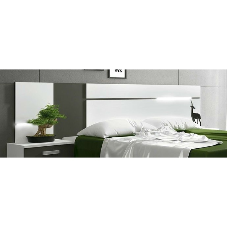 Su cabecero con luces LED y relieves crea una atmósfera cálida y acogedora. Los acabados en blanco-grafito aportan modernidad y versatilidad, combinando a la perfección con cualquier complemento de tu habitación.