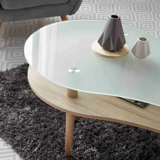 Mesa centro Peanut tapa glaseada: elegancia y diseño para tu hogar