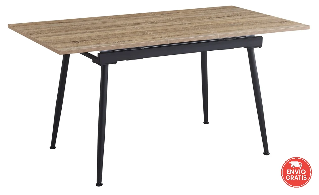 La Mesa Trenton extensible es una pieza versátil y elegante que aporta estilo y practicidad al comedor. Su diseño combina el encanto cálido del acabado roble aserrado con la solidez de sus patas metálicas negras, creando una mesa moderna perfecta para ambientes industriales o nórdicos. Fabricada en melamina de alta calidad, garantiza durabilidad y fácil limpieza, ideal para el uso diario. Su sistema extensible permite adaptar el espacio según las necesidades, ofreciendo amplitud sin renunciar al diseño. Esta mesa de comedor encaja a la perfección en hogares actuales que buscan muebles funcionales, resistentes y visualmente atractivos. Además, su estilo industrial se combina con una estética limpia y minimalista, aportando equilibrio a cualquier estancia.