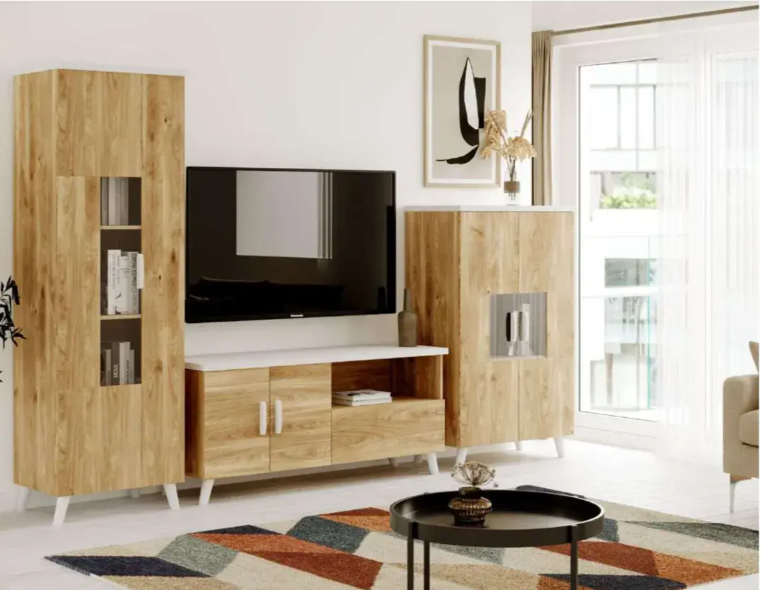 Esta colección de muebles de salón estilo nórdico ofrece una excelente relación calidad/precio. Los módulos son combinables y adaptables entre sí, lo que te permite personalizar tu configuración según tus preferencias y necesidades. Puedes elegir entre dos colores base: Nieve o Roble, y además, tienes la opción de combinar la tapa superior y los tiradores en los mismos tonos o en colores contrastantes. Además, se ofrecen patas opcionales para completar el diseño según tu gusto personal.Tirador unico modelo nordico.