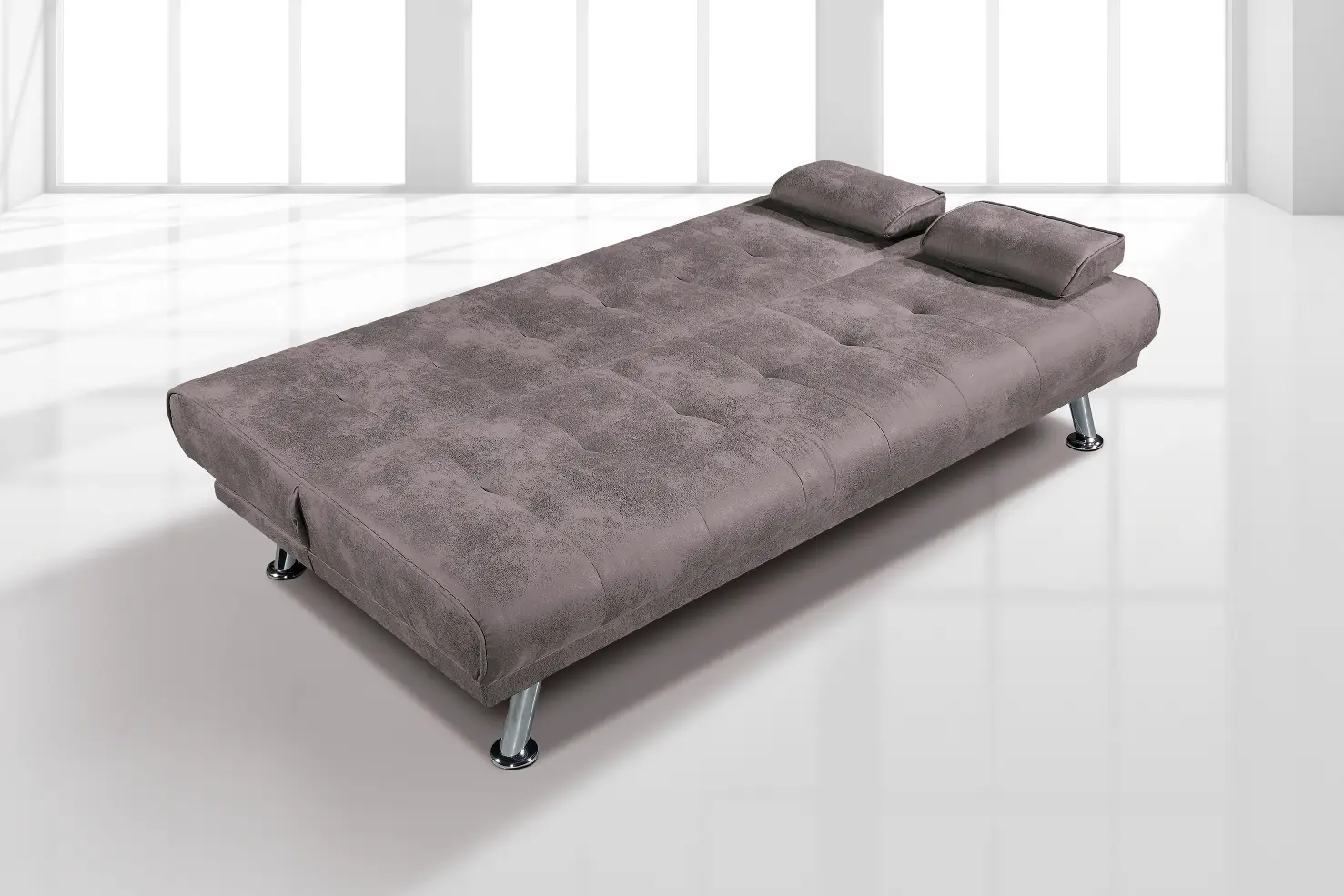 El sofá cama Cesto utiliza un sistema clic clac que permite abatir el respaldo hacia atrás y transformarlo en cama con un simple movimiento.